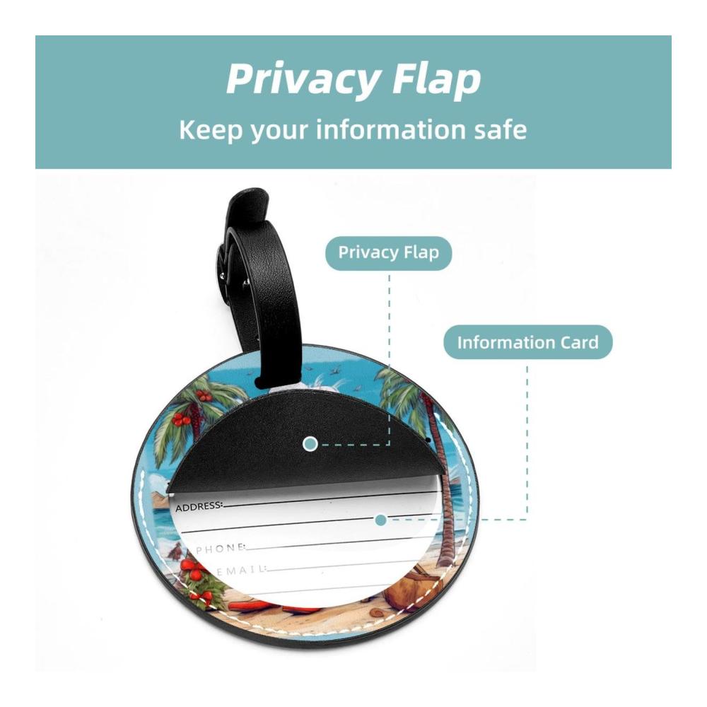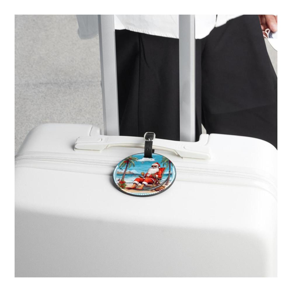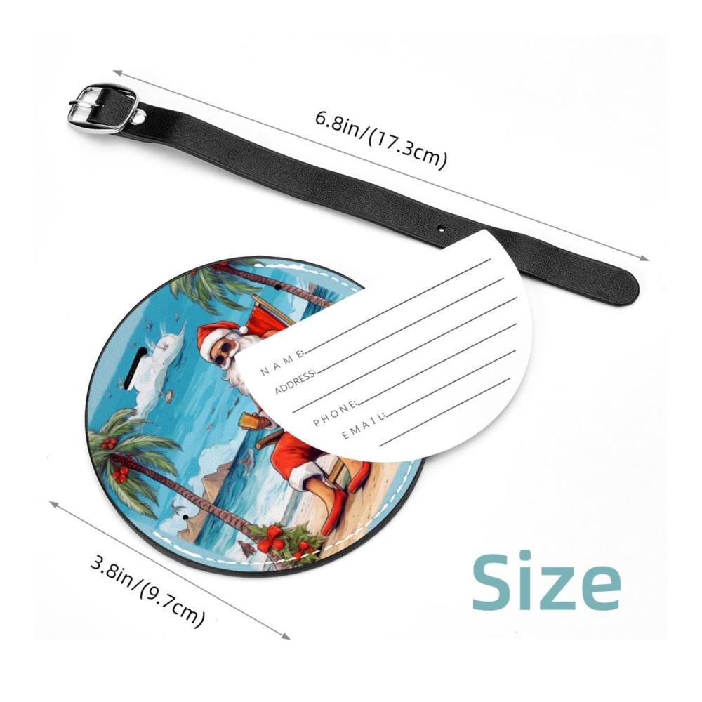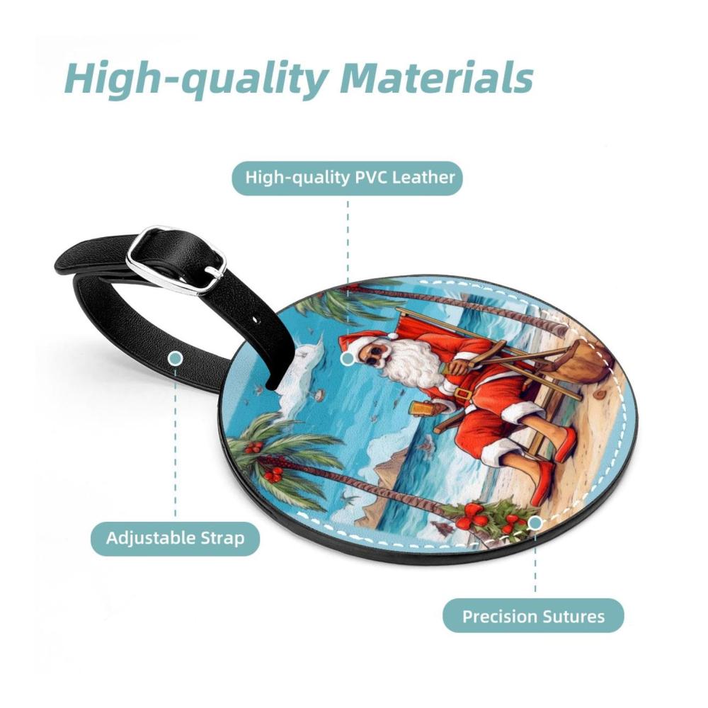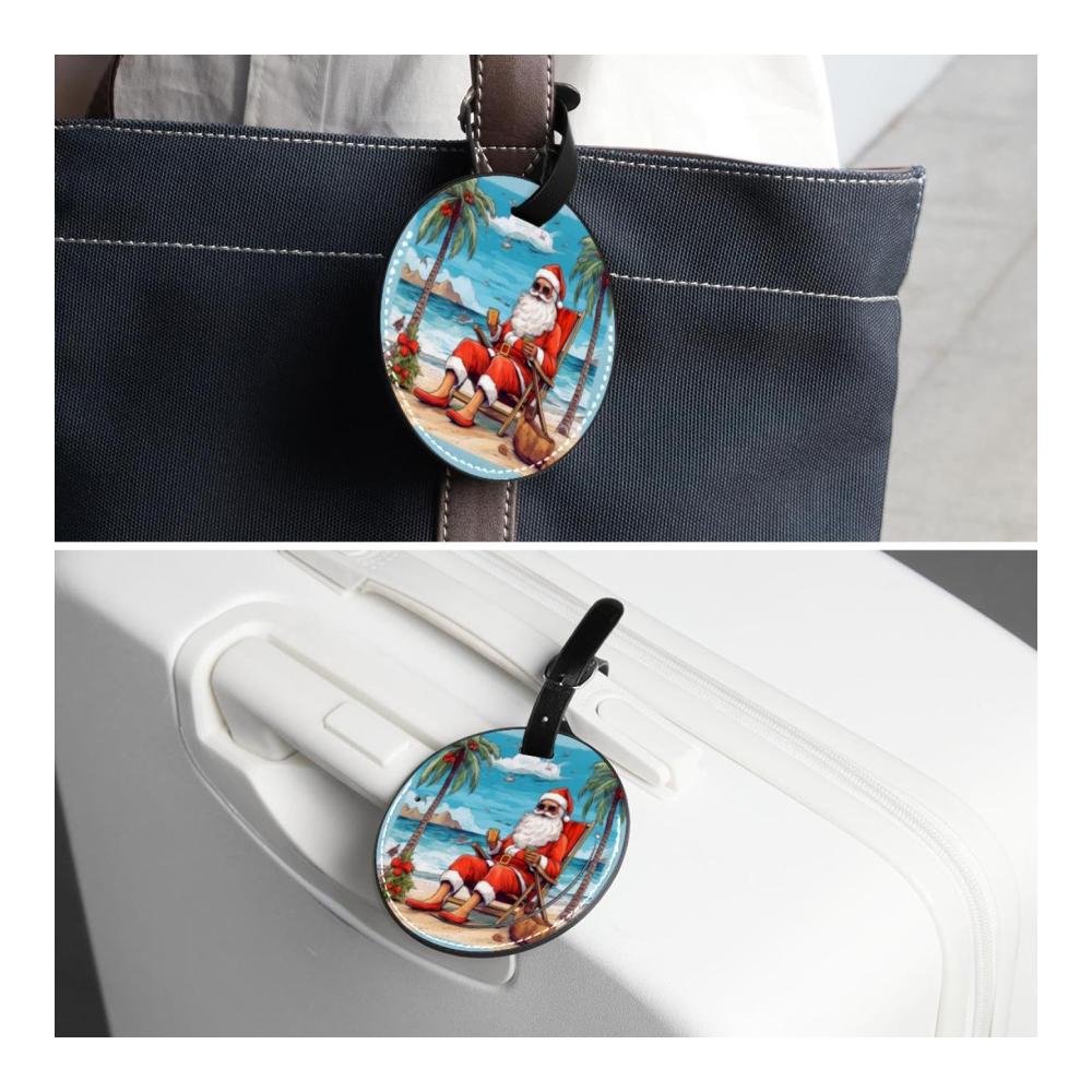 Eleganter Runder Gepäckanhänger aus Leder mit Sichtschutz und Namensschild für Koffer Handtaschen & Rucksäcke 2er-Pack – Weihnachtsmann