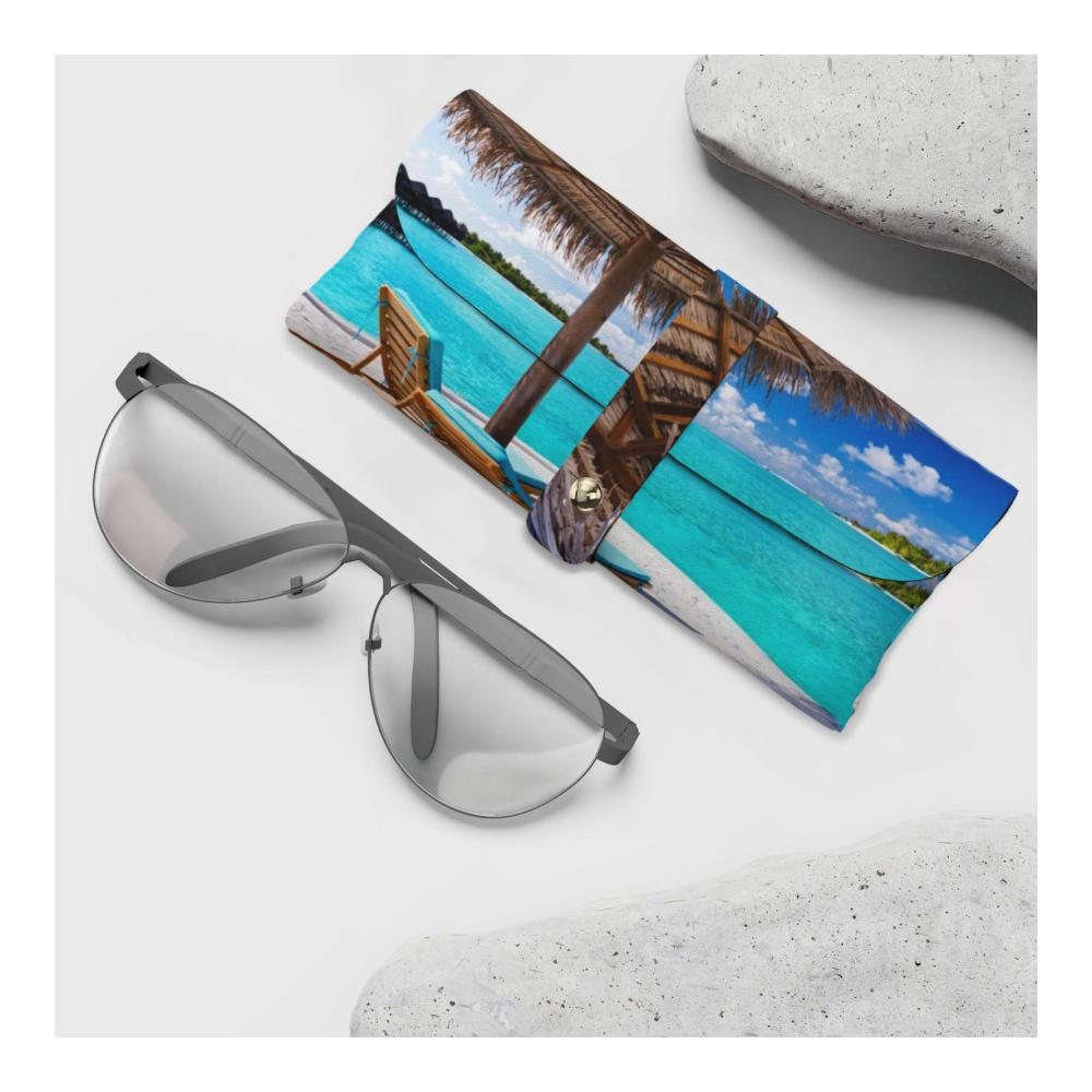 Premium Sonnenbrillenetui aus Echtleder mit Tropenaufdruck | Weiches PU-Leder Etui | Modische Brillenaufbewahrung