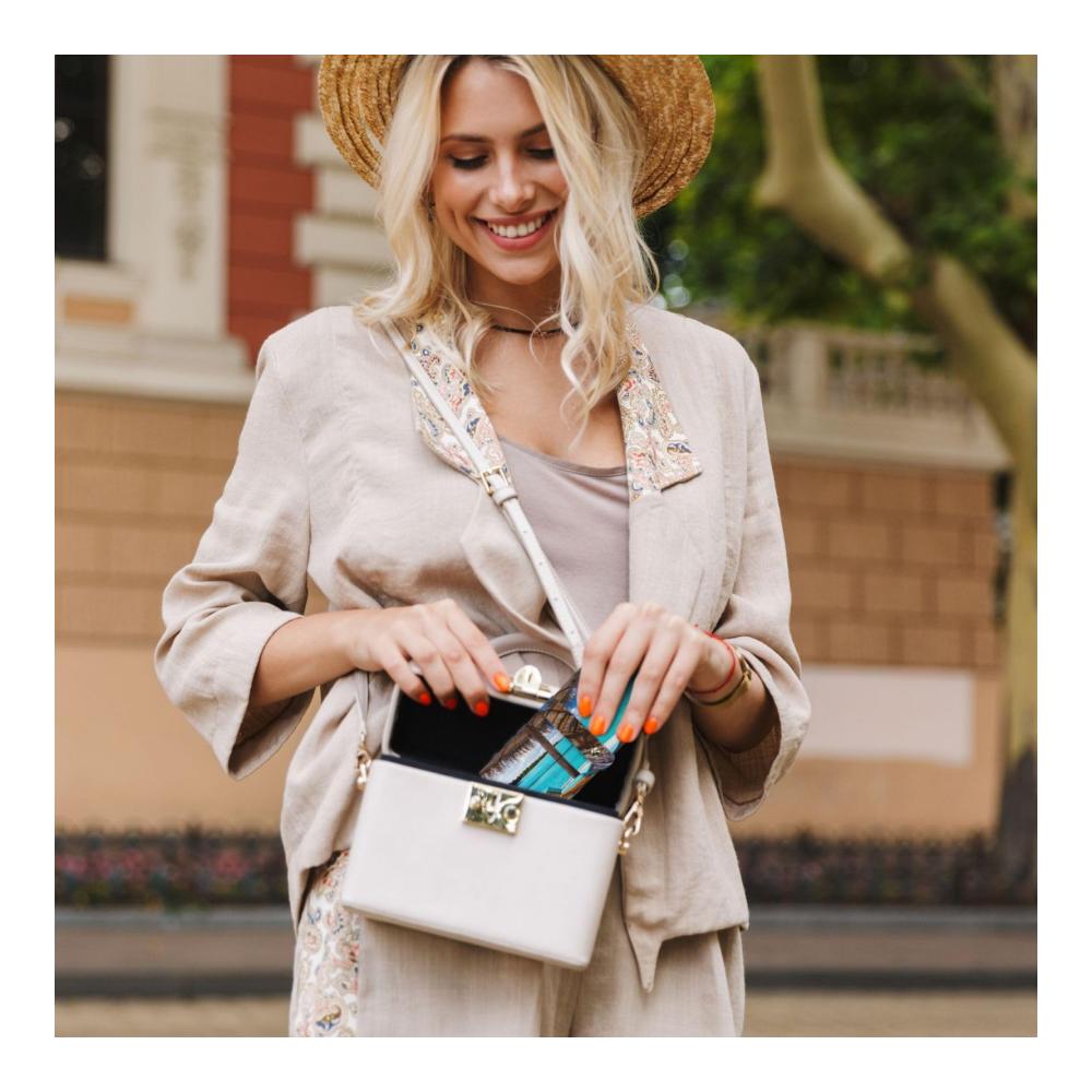 Ästhetische Details: Das Sonnenbrillenetui verfügt über einen geschmackvoll ausgewählten, leicht vergoldeten Pilzstecker, der dem Gesamtbild einen Hauch von Klasse und Eleganz verleiht.