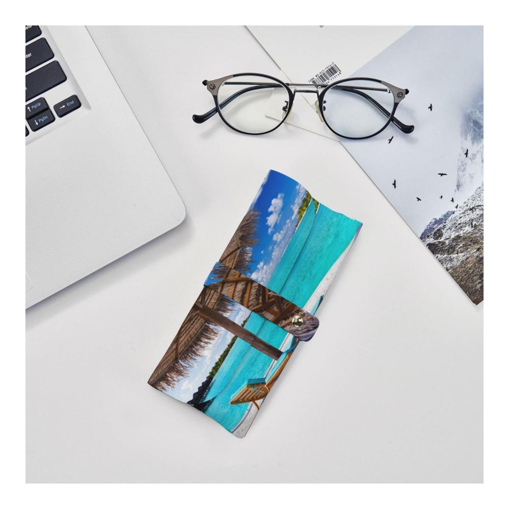 【Tropischer Stranddruck Premium-Material】 Das Brillenetui ist aus verdicktem Nibouti-Nappa-genarbtem PU-Leder, dieses Sonnenbrillenetui bietet überlegene Haltbarkeit und Schutz, zeigt ein Gefühl von Luxus und Charme.