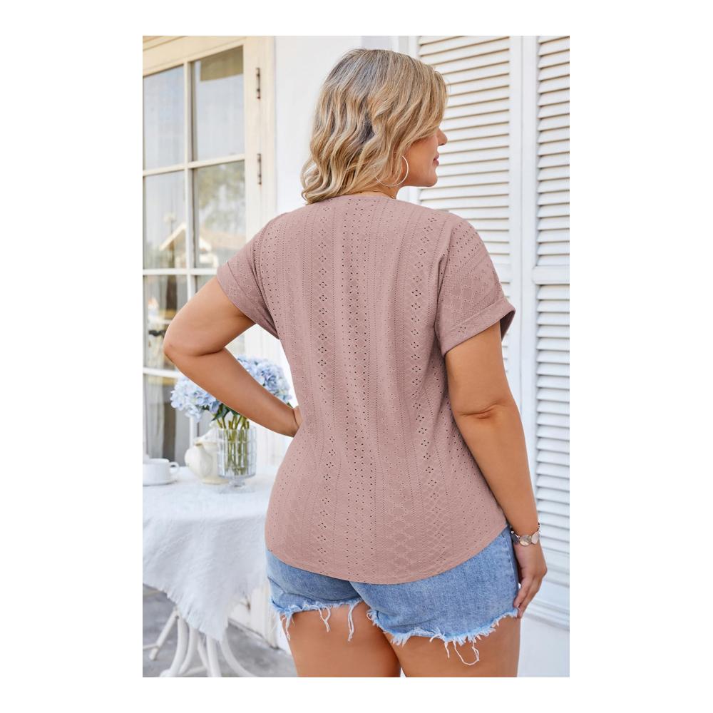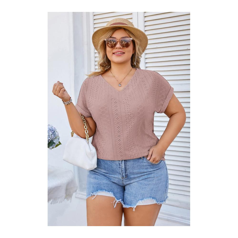 Entdecke den Charme von T-Shirts: Damen Große Größen Kurzarm T-Shirt mit Hollowed-Out V-Ausschnitt Bluse für Freizeit und Eleganz