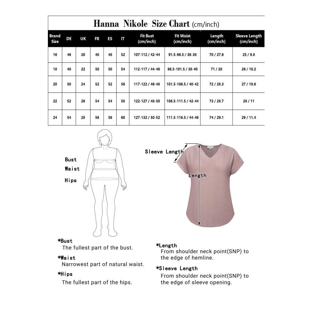 Produktbeschreibung *Artikelmaterial: 95 % Polyester 5 % Elastan. *Artikelfarbe: Schwarz/Weiß/Hell-Eton-Blau/Hellrosa (wie abgebildet). *Artikelelastizität: Mittel dehnbar *Artikelmerkmale: 1) Plus-Size-Design 2) Ausgehöhlte Struktur 3) Kurze Fledermausärmel 4) V-Ausschnitt 5) Geschwungener Saum 6) Das Kleidungsstück ist mäßig dehnbar *Packungsinhalt: 1*Tops (kein Zubehör enthalten) Tipps zur Kleidungspflege: Dunkle Farben separat waschen Entfernen Sie Dekorationen vor dem Waschen Nicht einweichen Anmerkungen: 1. Die tatsächliche Farbe des Kleidungsstücks kann geringfügig von den Bildern abweichen, da die Farben auf verschiedenen Bildschirmen aufgrund von Monitoreinstellungen und Pixeldefinitionen unterschiedlich angezeigt werden. 2.Bitte erlauben Sie leichte manuelle Messabweichungen für die Daten.