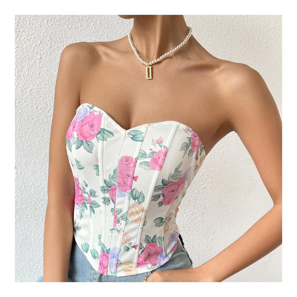 Design: röhrenoberteile für damen, korsetts für frauen, ärmellos, schulterfrei, trägerlos, florales bandeau, bustier bauchfreie oberteile, sehr schlanke passform und modisch.