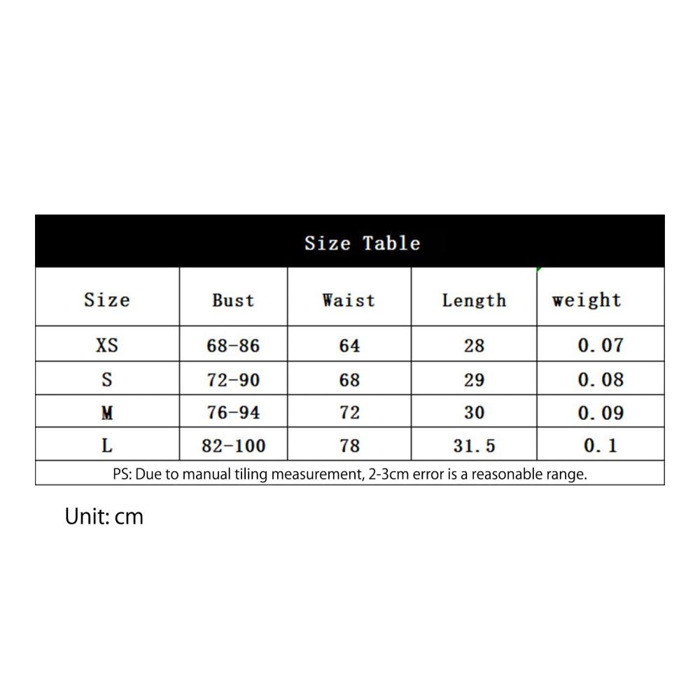 Größe M: Länge: 30, Brustumfang: 76-94, Taille: 72.