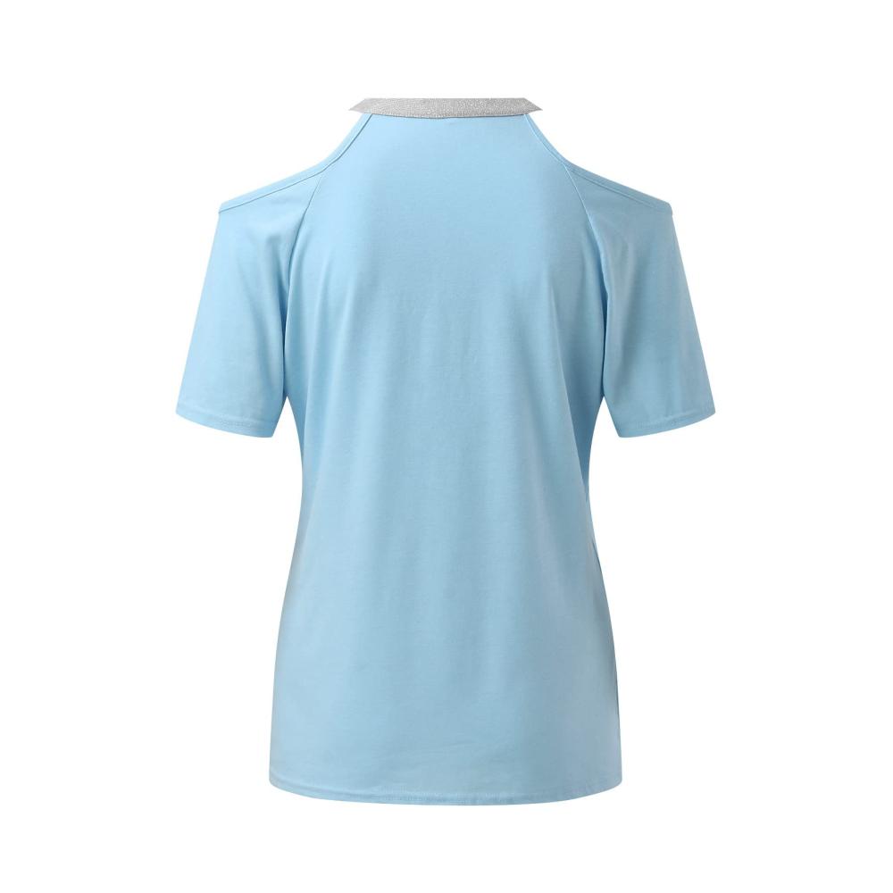 Eigenschaften: Frühjahr/Sommer, schulterfrei, T-Shirt für Damen, einfarbig, kurzärmelig, Blusen, tiefer V-Ausschnitt, hoher niedriger Saum.