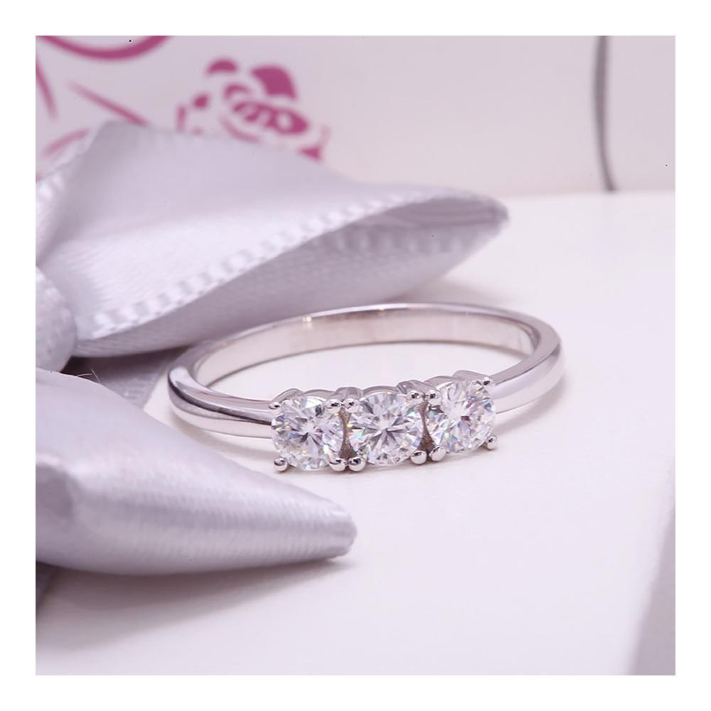 Verzaubern Sie Ihren Finger Echter Moissanit Goldring für Damen – Runder 01ct Schnitt 3 Stein Verlobungsringe in 18K Weißgold 750 – Einzigartiger Hochzeits- und Ehering
