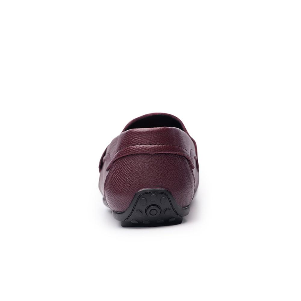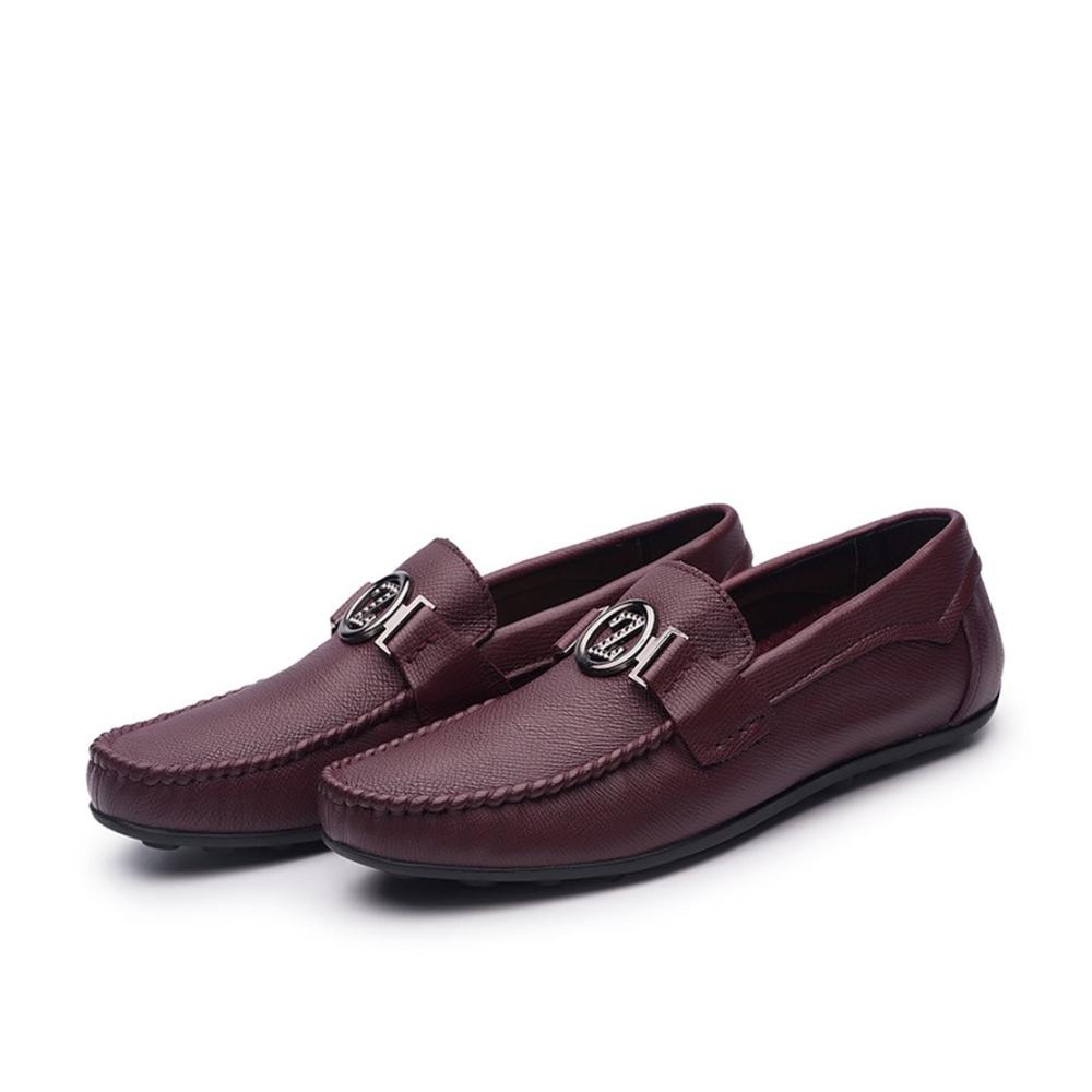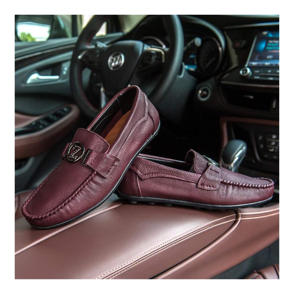 Stilvolle Herren Slipper & Mokassins: Bequeme Lederschuhe mit Dekoration und Ultraleichtem Design in Weinrot für Casual und Trekking, Größe 37 EU