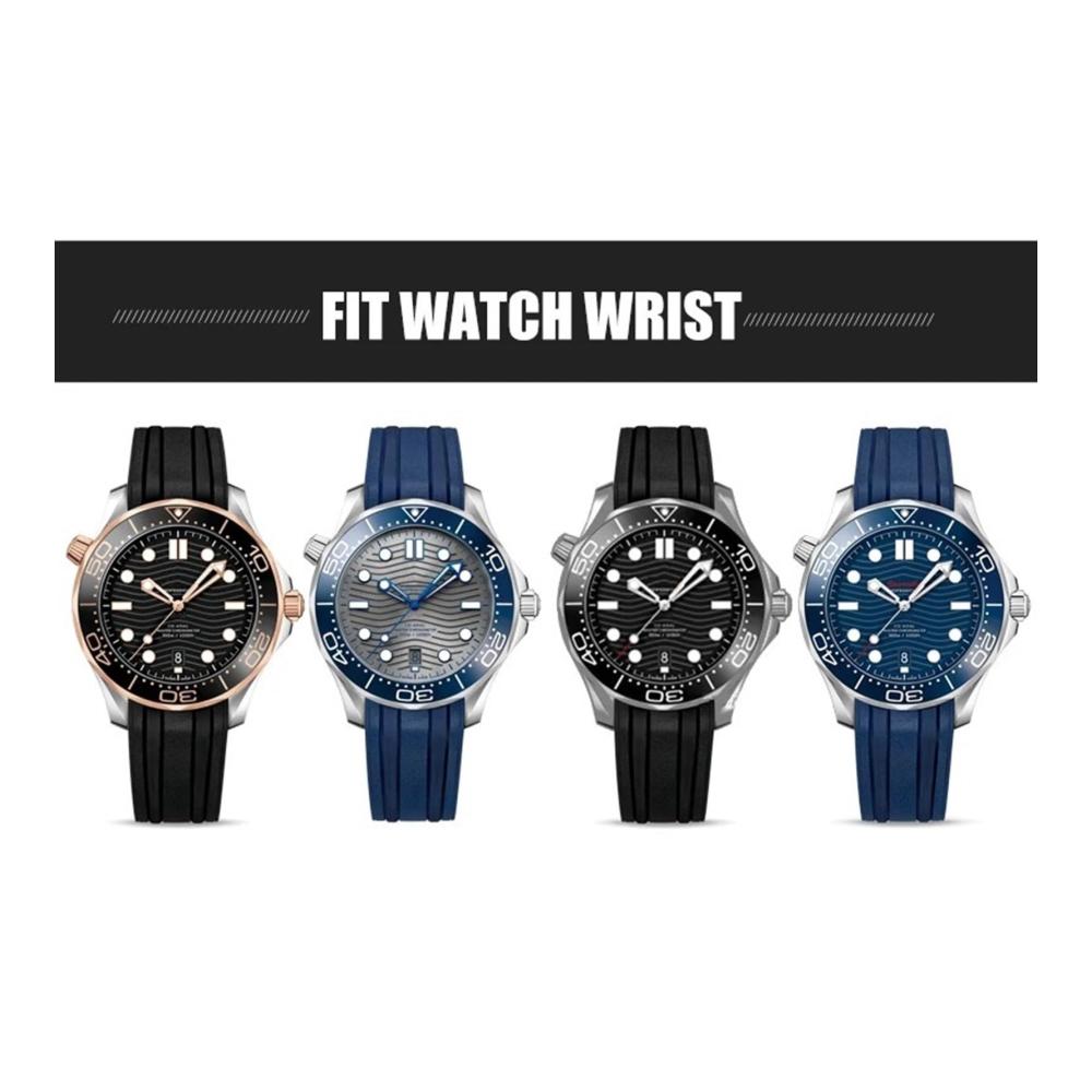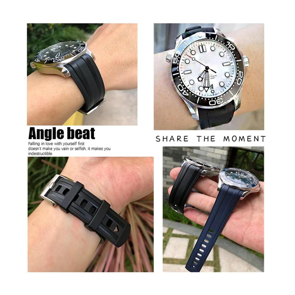 Erfrischen Sie Ihren Omega Seamaster Diver 300 mit unserem hochwertigen, weichen Silikonkautschuk-Uhrenarmband in Schwarz oder Blau – perfekte Passform für 20 mm / 21 mm.