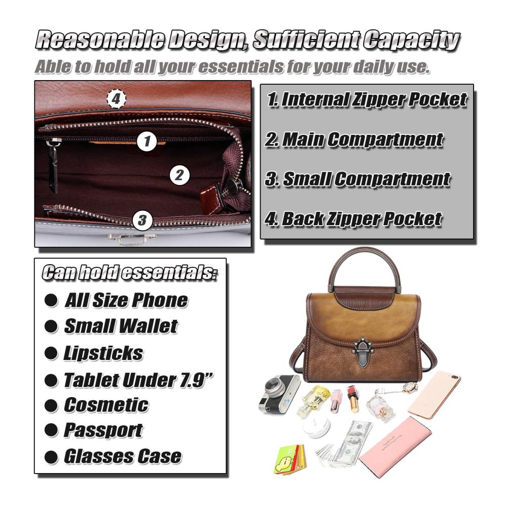 💕【Vintage Design】Diese Handtasche verfügt über ein Vintage-Design mit Farbverlauf und behält die natürliche Maserung des Leders, sieht edel und stilvoll. Das schöne Farbschema verleiht ihr einen vollständigen Vintage-Look, der Ihre Eleganz und Schönheit ergänzen kann.