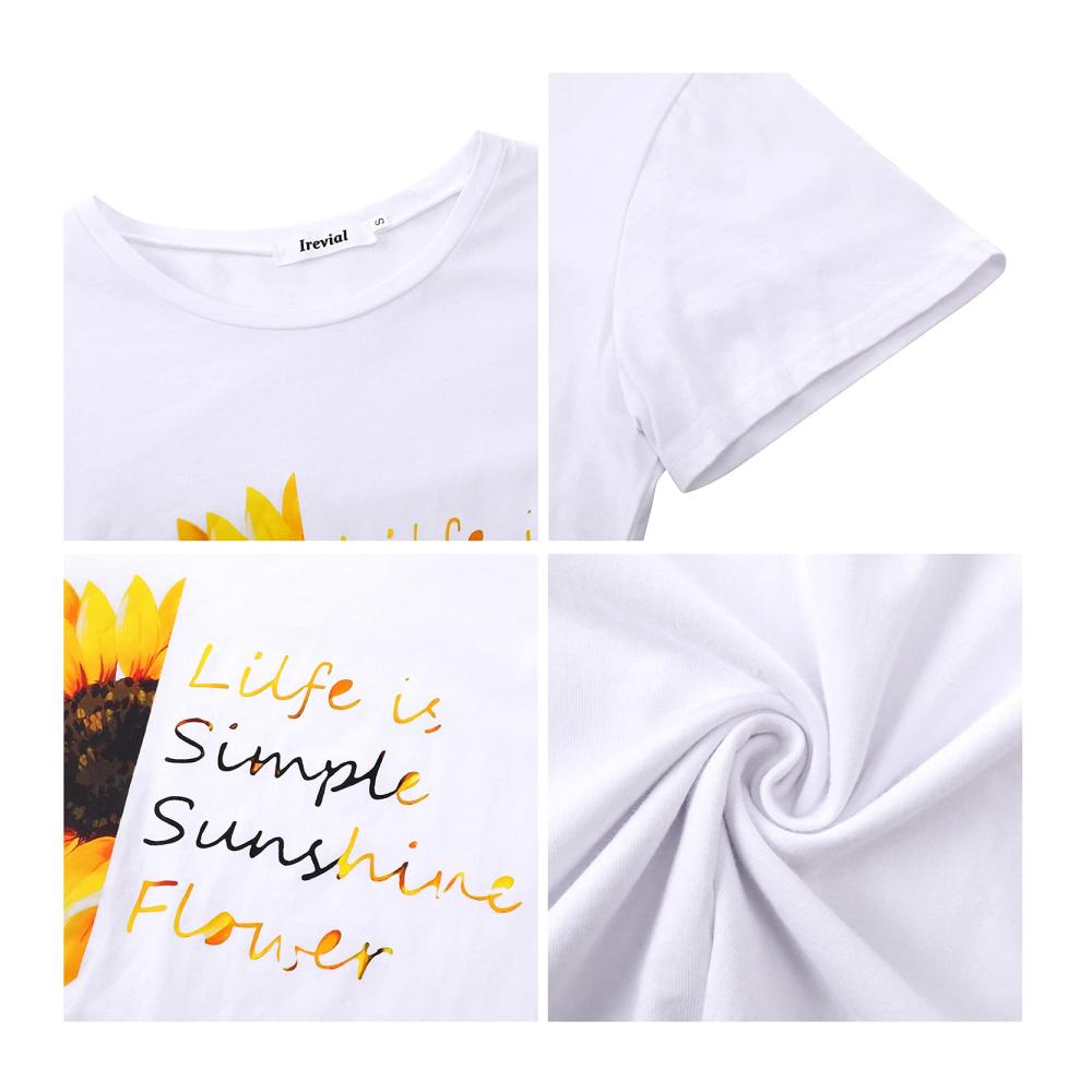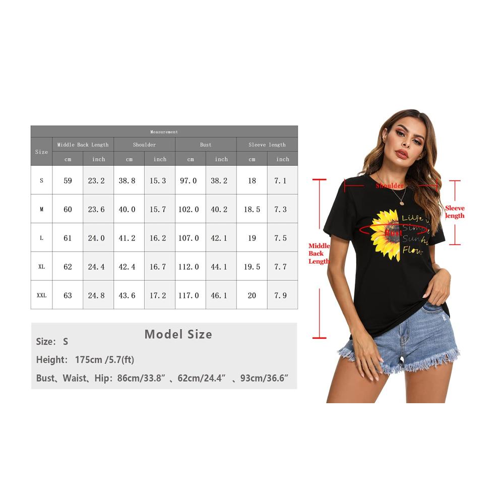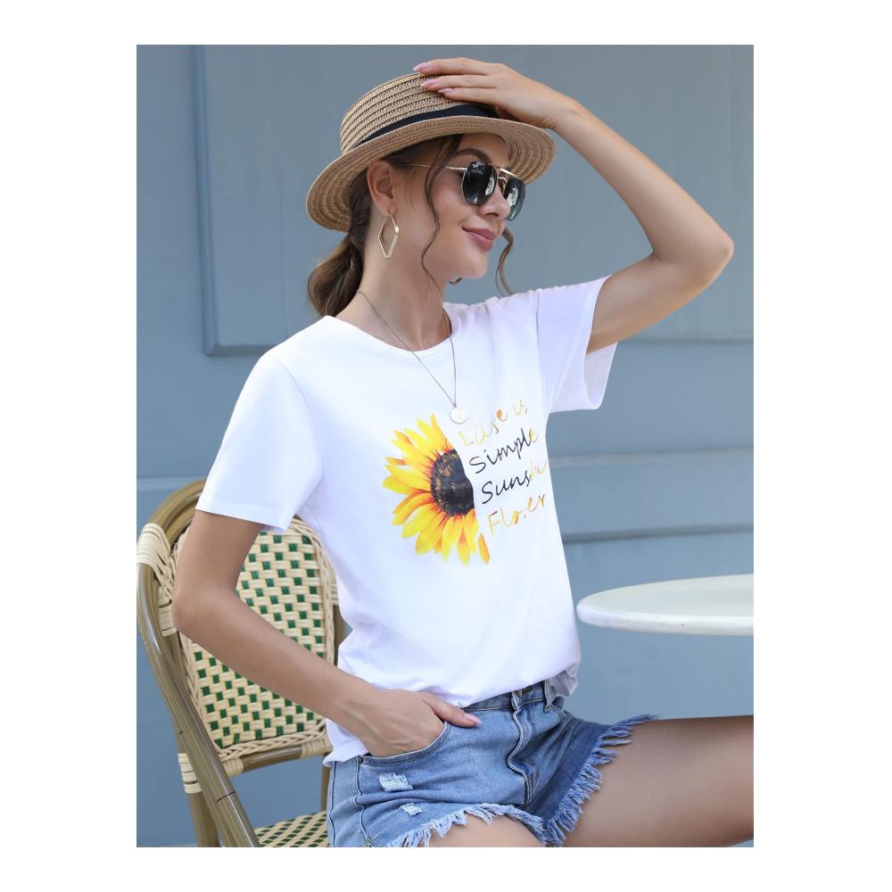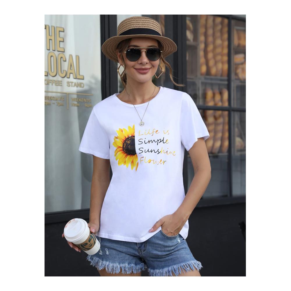 🌻【Gedruckter Stil】- Schlichte tunika blusen damen sommer mit Rundhalsausschnitt, Sonnenblumen und Monogramm-Print ist ein kurzärmliges, normal geschnittenes, lässiges, klassisches Damen-Kurzarm-T-Shirt.