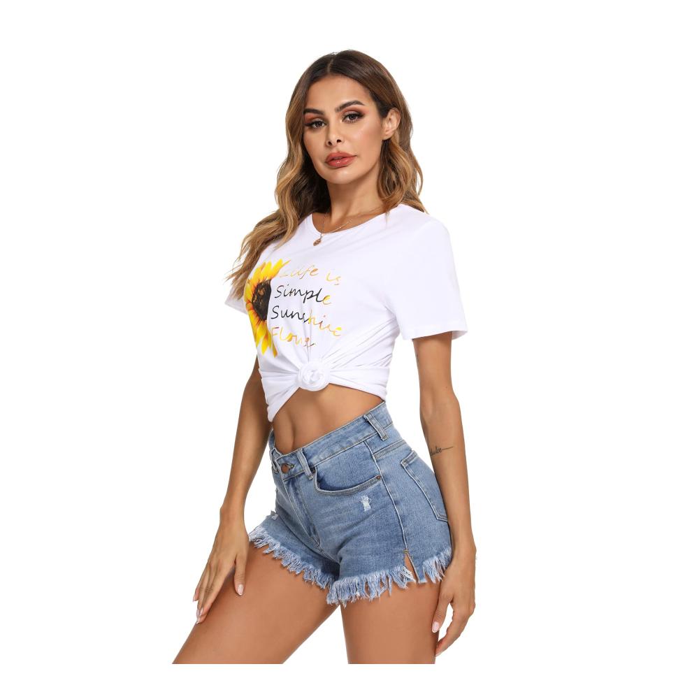 Damen Kurze Oberteile Blumen T-Shirts Sommerliche Tuniken Baumwollshortsleeves Casual Shirt für Damen
