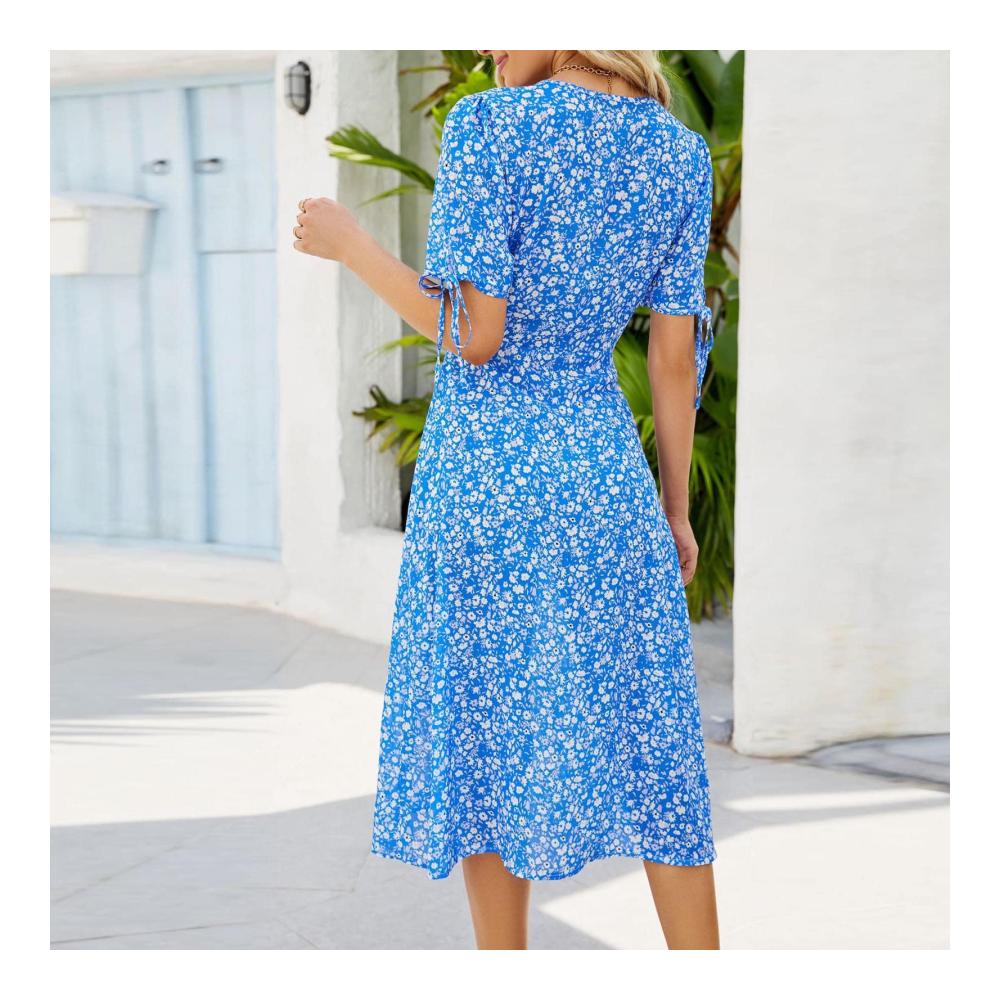 Entdecken Sie Ihren Stil Bohemian Damenkleider für entspannte Freizeitmomente und elegante Anlässe. Mit Blumenmuster V-Ausschnitt und Gürtel-Design perfekt für Strand und Party