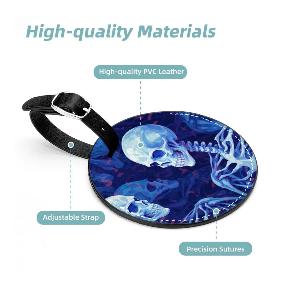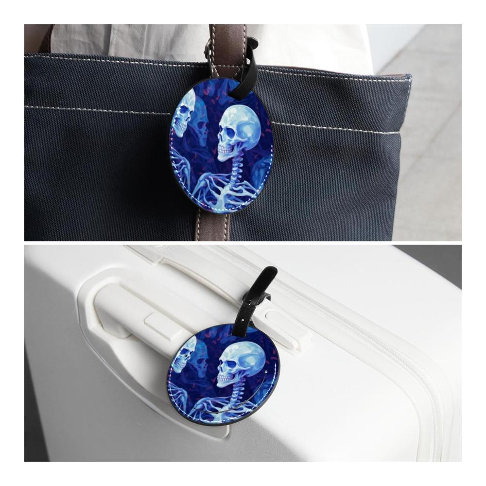 Hochwertige Leder Gepäckanhänger für stilvolles Reisen: Skelett Kreuzfahrt Design mit Sichtschutz und Namensschild, ideal für Koffer, Handtaschen, Rucksäcke. 2 Stück.