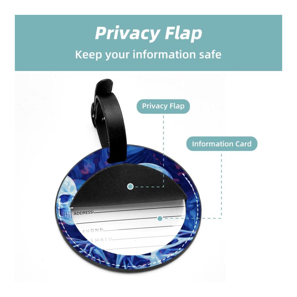 Hochwertige Leder Gepäckanhänger für stilvolles Reisen Skelett Kreuzfahrt Design mit Sichtschutz und Namensschild ideal für Koffer Handtaschen Rucksäcke. 2 Stück
