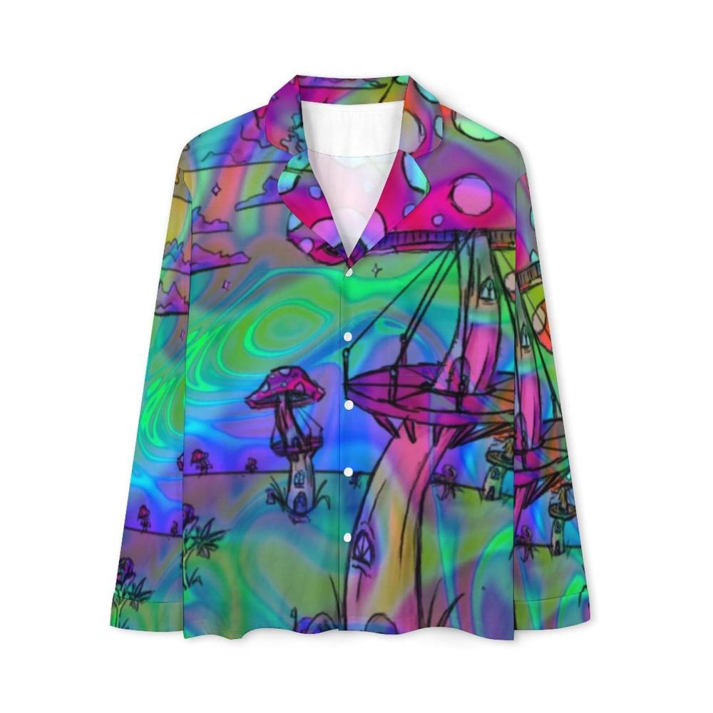Entspannende Herren Schlafanzüge: Genießen Sie Komfort und Stil! Verführerische Psychedelic Trippy Mushroom Muster, praktische Taschen und ein eleganter V-Ausschnitt. Gönnen Sie sich erholsamen Schlaf in diesen modischen Pyjamas