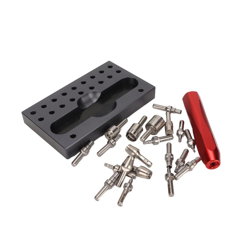 • Einfache Bedienung: Dieses Werkzeug zum Entfernen des Uhrenrohrs eignet sich zum Anziehen oder Lösen der Ausgleichsdornschraube sowie zum Montieren oder Demontieren von Schrauben im Kronenrohr und für die Batterieabdeckung relevanter Werkzeuge.
