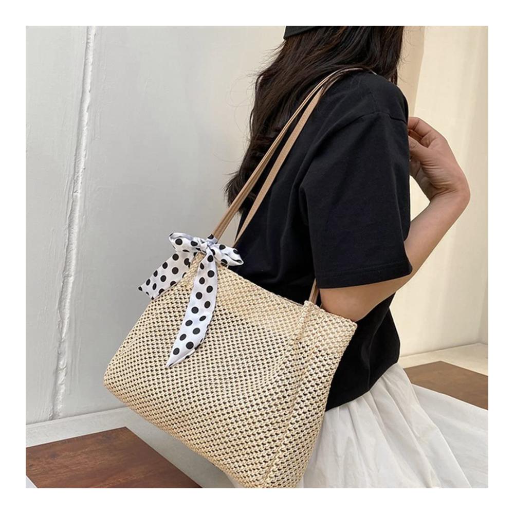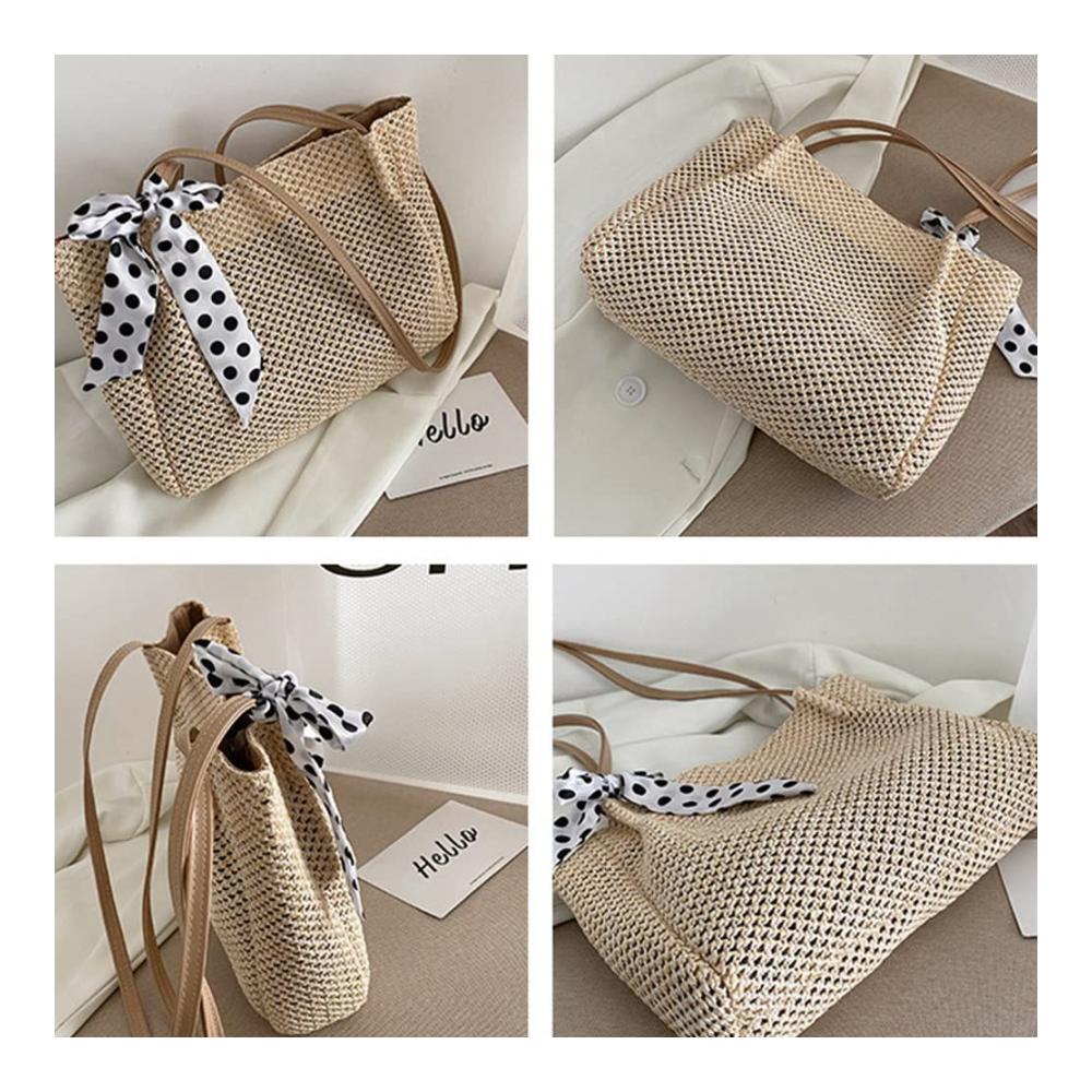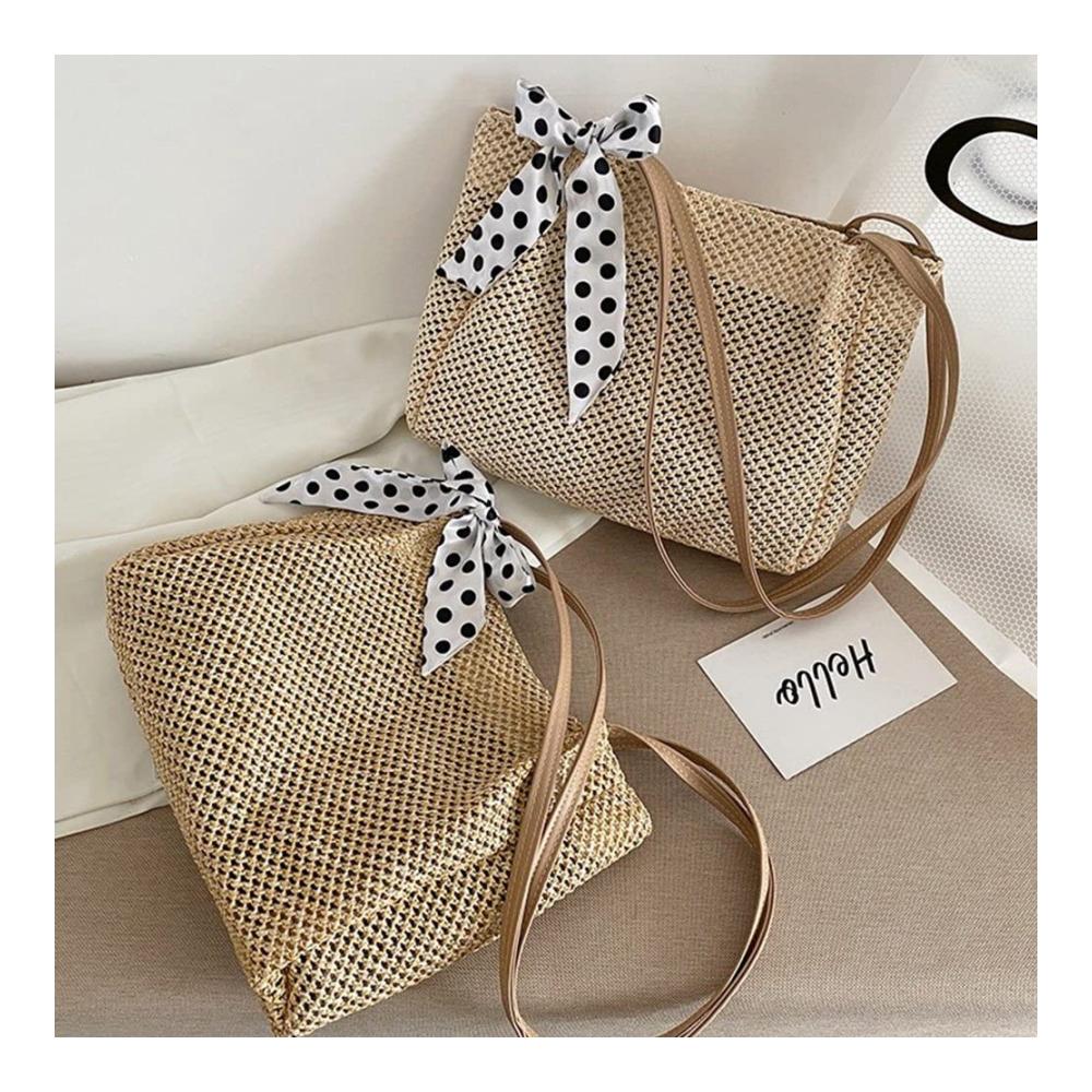 Handgefertigte Stroh-Schultertasche Unikater Gewobener Korb Perfekt als Strandtasche Umhängetasche oder Reisetasche (Beige
