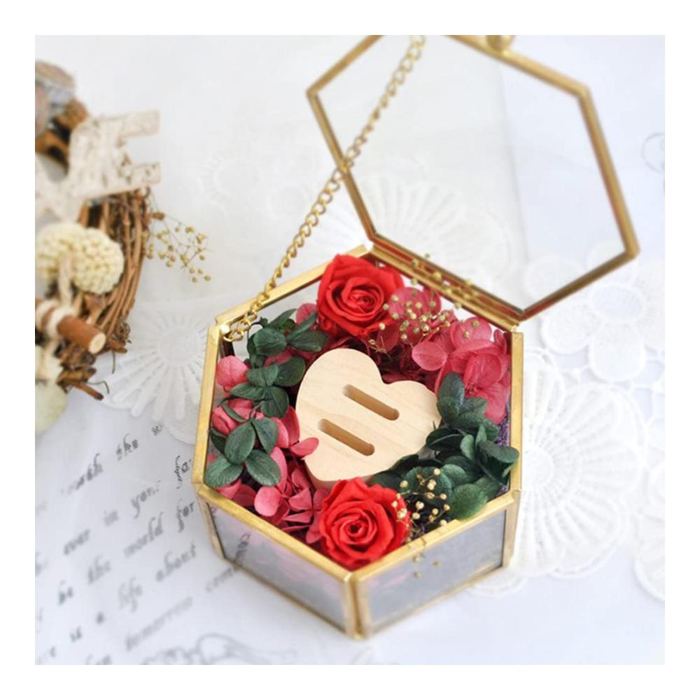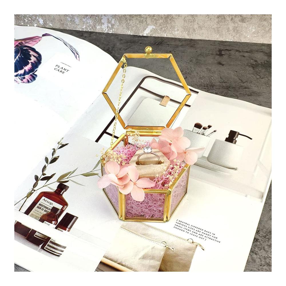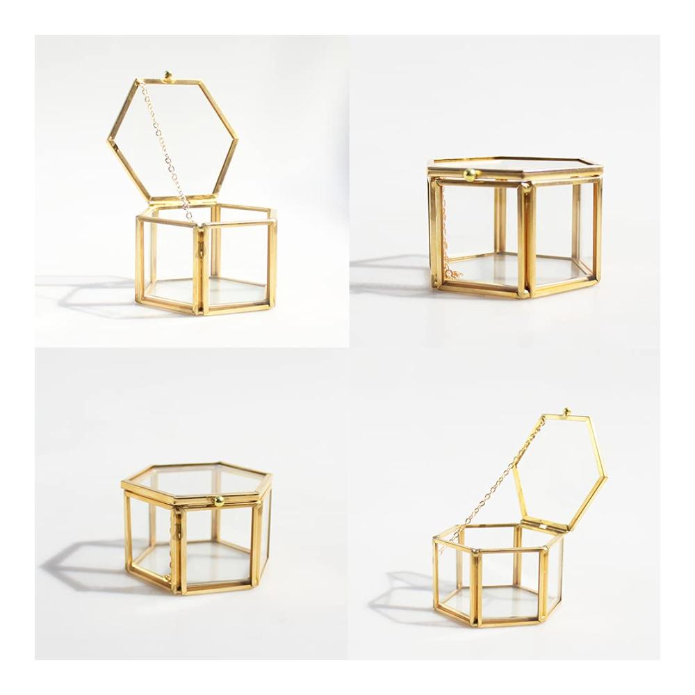 Schmuckschatulle aus Glas geometrischer Schmuckorganizer goldene Vintage-Schmukkiste geometrisches Glas-Terrarium Aufbewahrungsbox für Ringe Ohrringe und Blumen (Gold