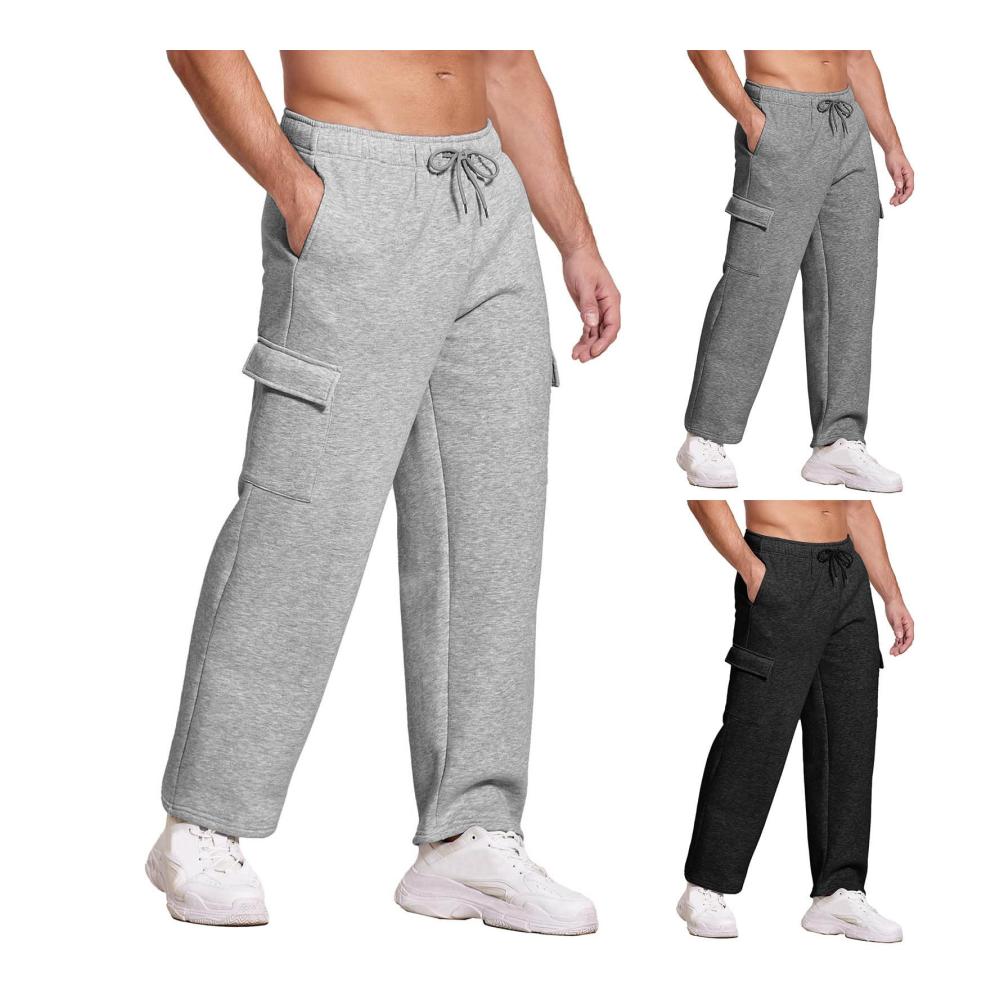 Verdickte Hose für Herren mit mehreren Taschen Mode lässige einfarbige Hose mit lockerem geradem Bein