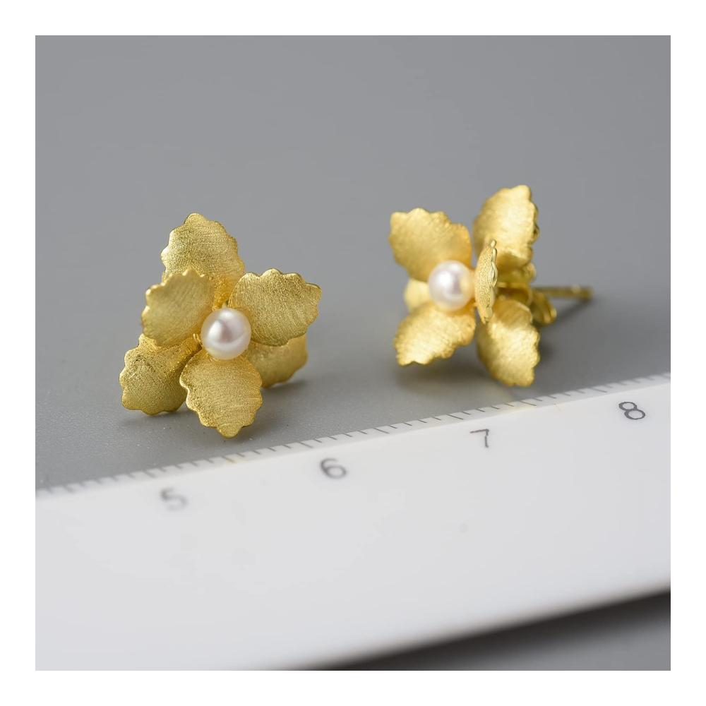 Exquisite Ohrringe Silber 925 zarte Begonienblume mit Perle. Perfektes Geschenk für Frauen. Stilvoller Schmuck der verzaubert