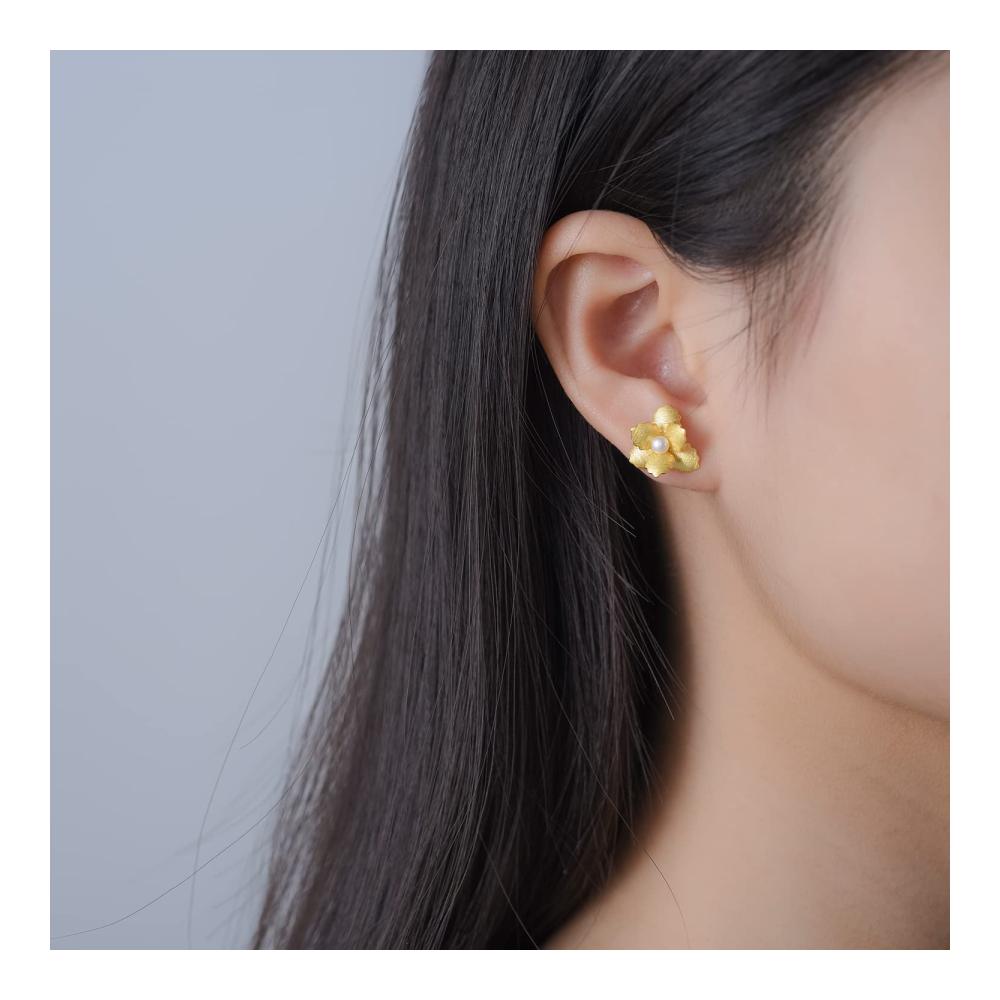 ♥ Einzigartiges Design ♥ „Kleine Begonien Blume mit Perle Ohrstecker“das Tragen dieser handgefertigten und einzigartigen S925 Silber Ohrstecker macht Frauen mit einem einzigartigen und edlen eleganten Temperament.