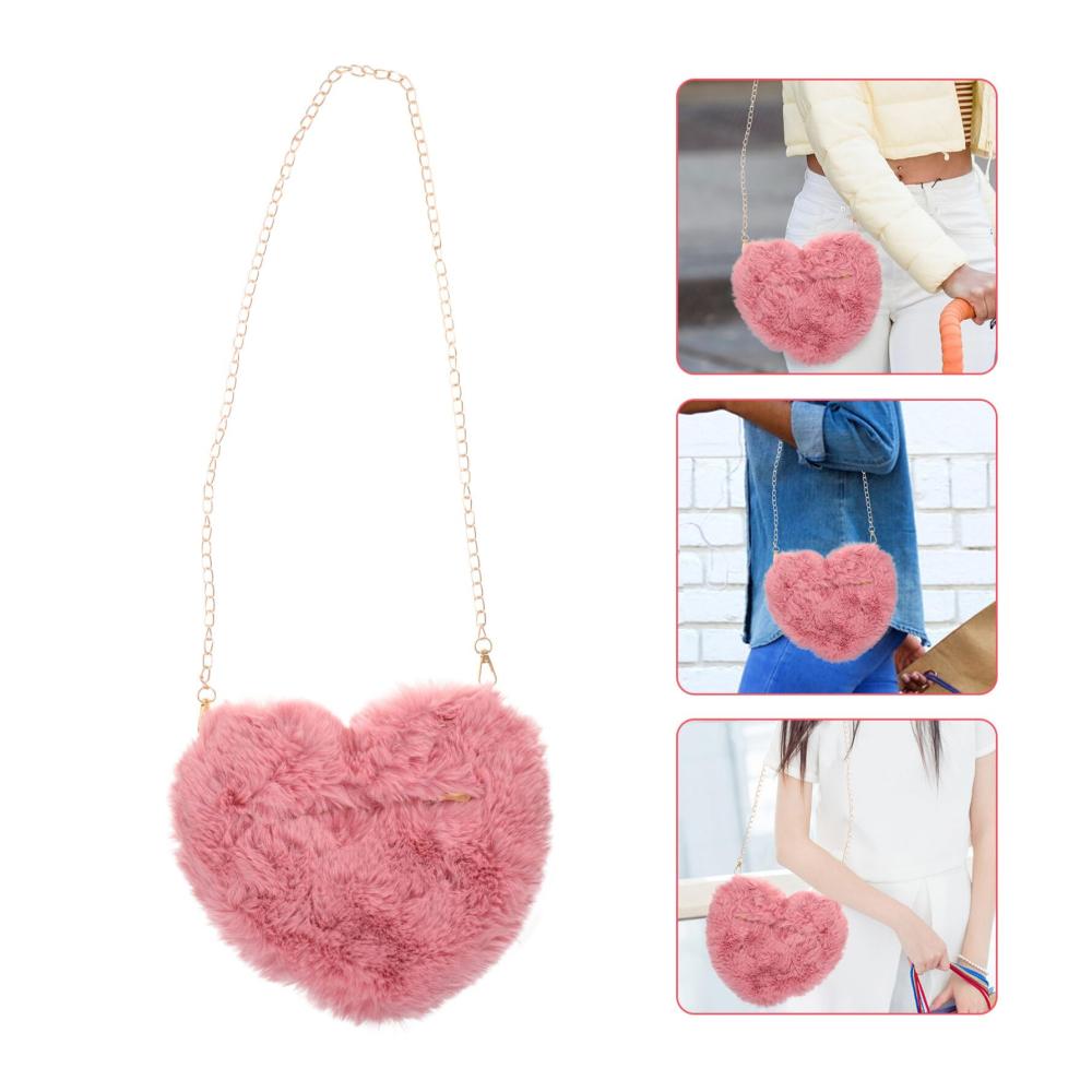 💖💕—【Valentinstag-Geldbörse】Handy-Geldbörse aus Plüsch, herzförmige Umhängetasche mit Kette, süße flauschige Umhängetasche für Damen und Damen, süße Herzform. schöne Tasche für jedes Mädchen. Sie können sie als einzelne Umhängetasche oder Umhängetasche verwenden. Ein junges Teenager-Mädchen wird es absolut lieben.
