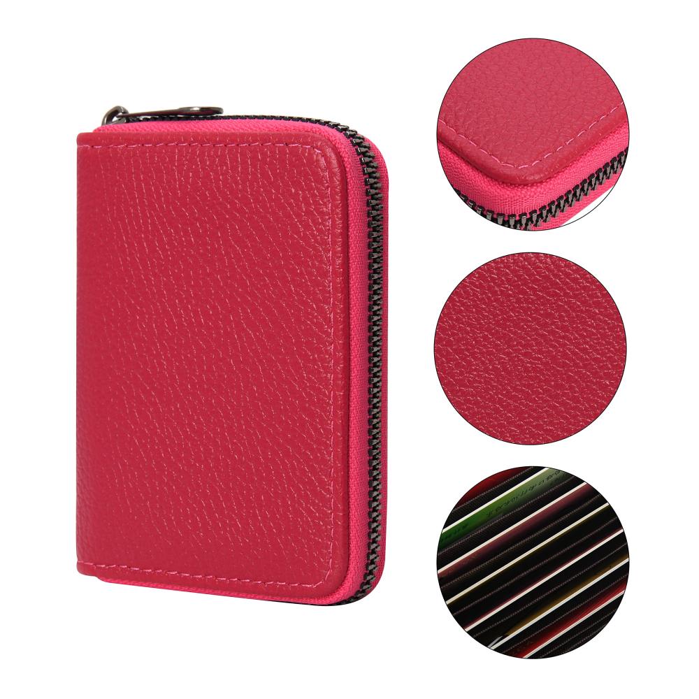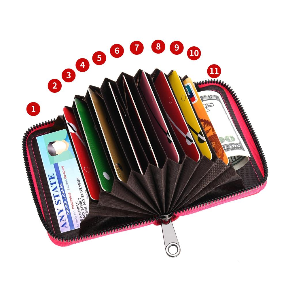 Stilvoll geschützt Kreditkartenhüllen Orgel-Stil aus Leder – Sicherheit und Eleganz in einem Etui für Damen und Herren – 11 Fächer – Anti-Diebstahl – Rosa Rot