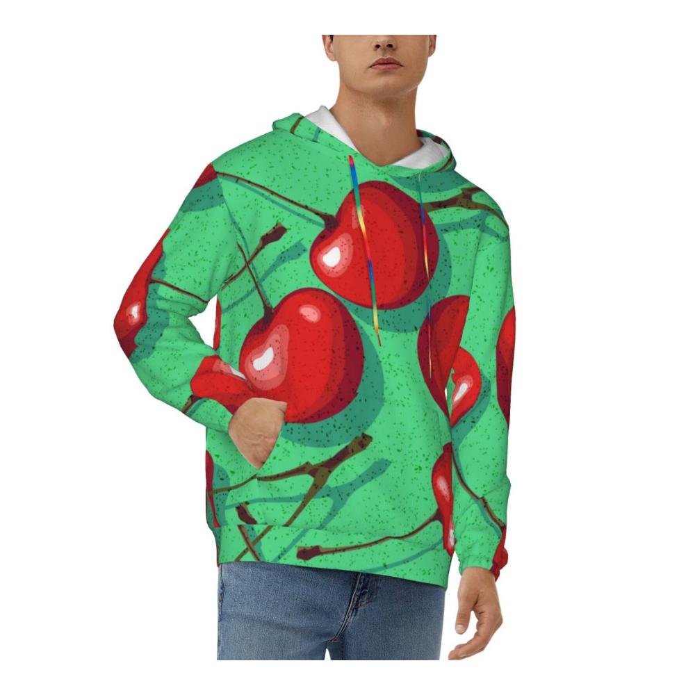 Bequemer Hoodie mit Kapuze und süßem Kirschendesign für Damen und Herren mit Kordelzug und langen Ärmeln