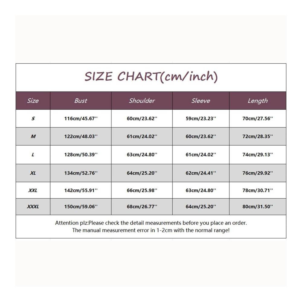 【Größentabelle】Bitte beachten Sie unsere Größentabelle genauer auf der linken Seite, um die richtige Größe auszuwählen. Bitte beachten Sie, Wenn Sie lose mögen, wählen Sie bitte 1 oder 2 Nummern größer. Bei Fragen stehen wir Ihnen gerne zur Verfügung.