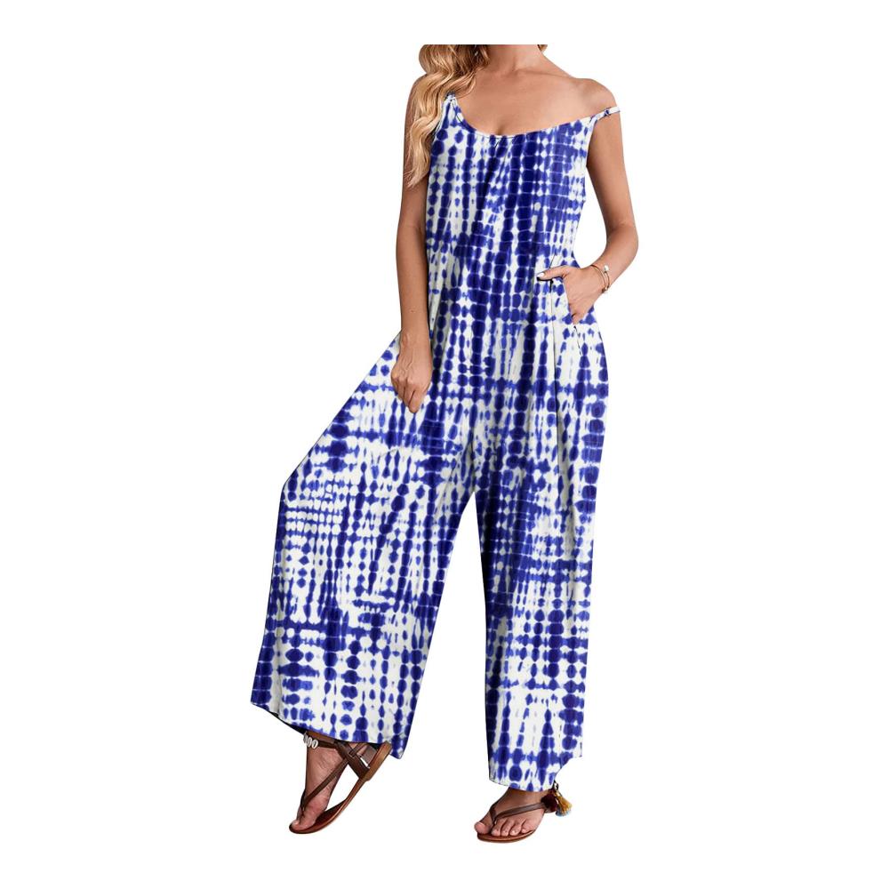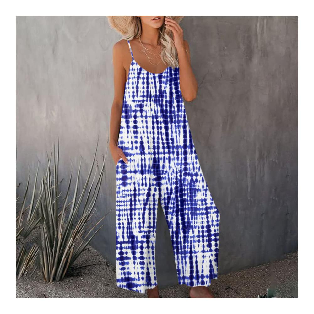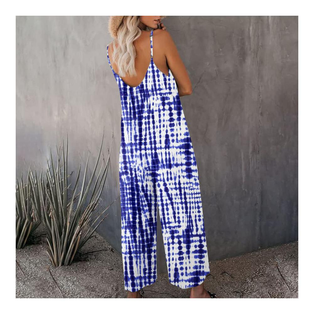 Damen Latzhose Sommer Jumpsuit Freizei Spielanzug Lose Weitem Bein Bequeme Große Größen Ärmellose Hosen Täglich Lang