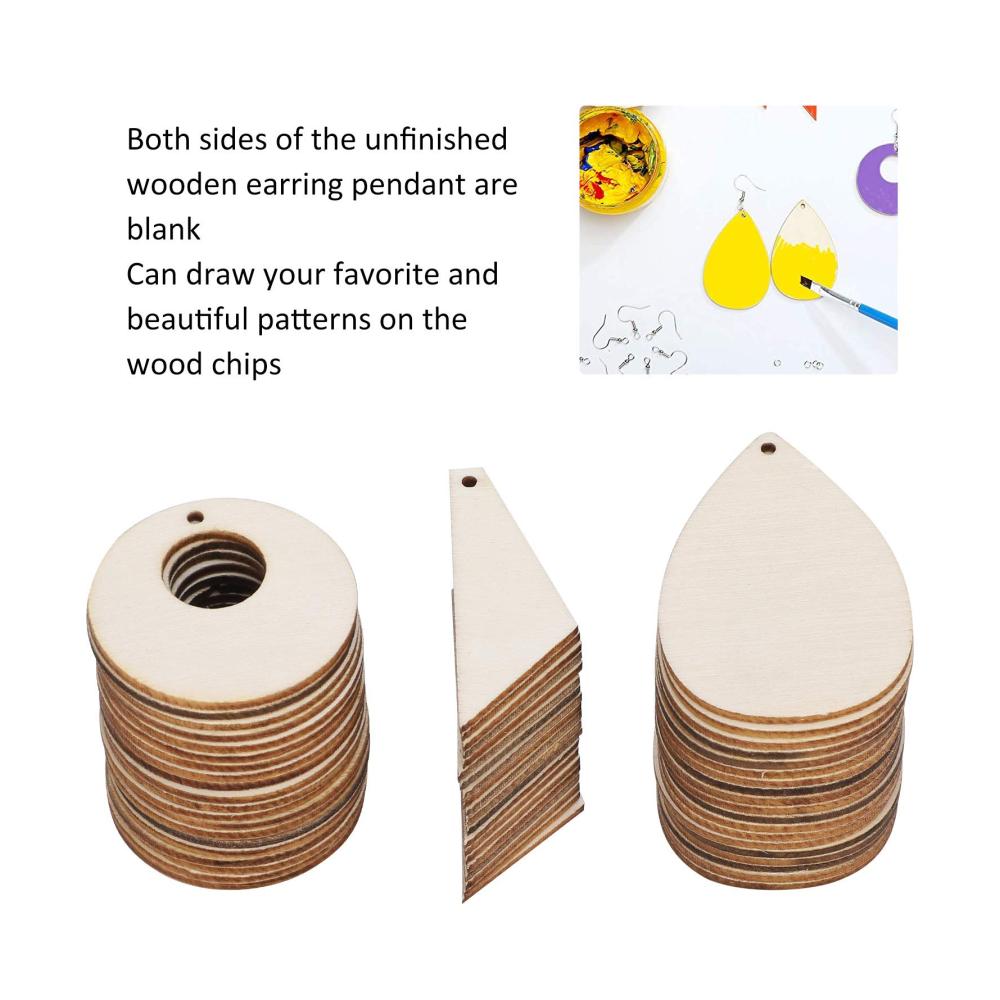 Blanko und kreativ: Beide Seiten des unfertigen hölzernen Ohrringanhängers sind blanko, was bedeutet, dass Sie Ihre Lieblings- und schönen Muster auf die Holzspäne zeichnen können, indem Sie Ihrer Fantasie und Kreativität freien Lauf lassen. Sie können Ihre Persönlichkeit und Ihren Stil zeigen und Ihre Ohrringe einzigartig und besonders machen.