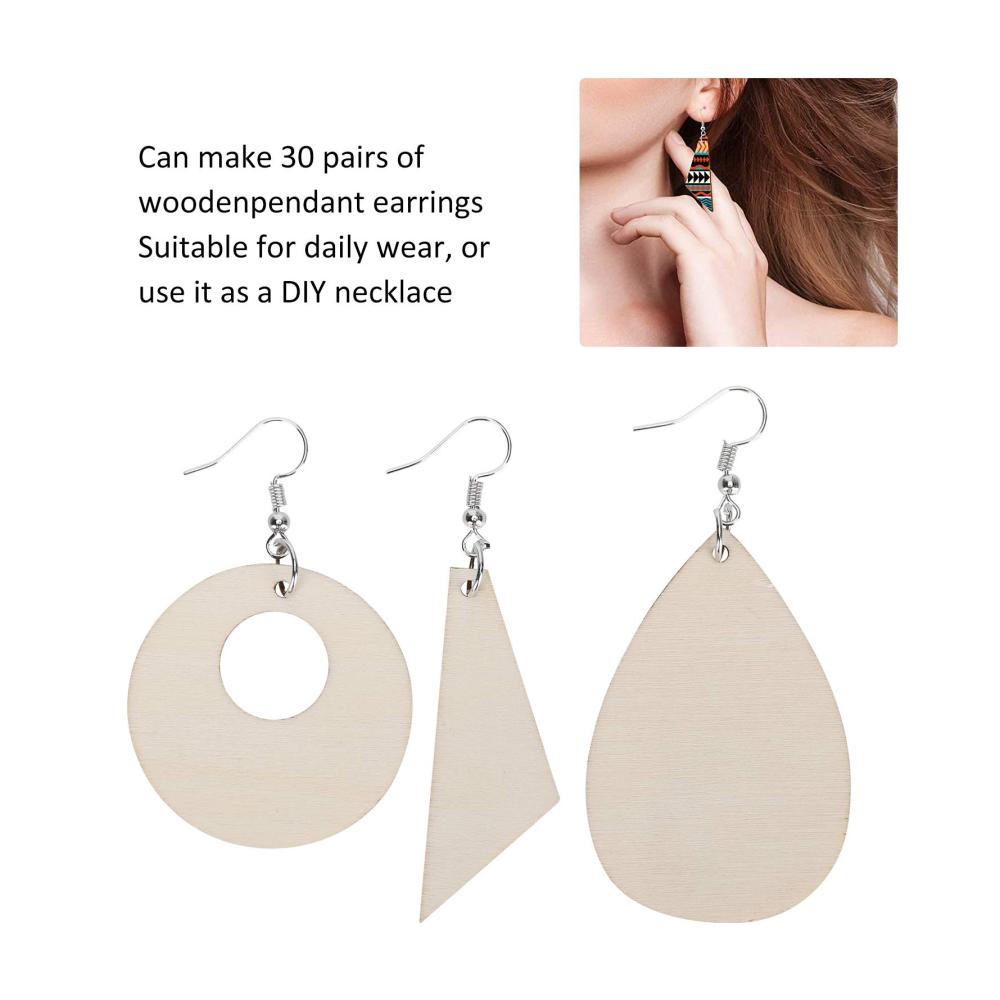 Vielseitig und praktisch: Diese Ohrringe sind vielseitig und praktisch und können für verschiedene Zwecke und Anlässe verwendet werden. Sie können 30 Paar Holzohrringe herstellen, die für den täglichen Gebrauch geeignet sind, oder Sie können sie als DIY-Halsketten, hängende Ornamente und andere handgefertigte Bastelartikel verwenden. Sie können auch verschiedene Formen und Größen von Holzspänen kombinieren, z. B. dreieckig, tropfenförmig und rund, um unterschiedliche Stile und Effekte zu erziele